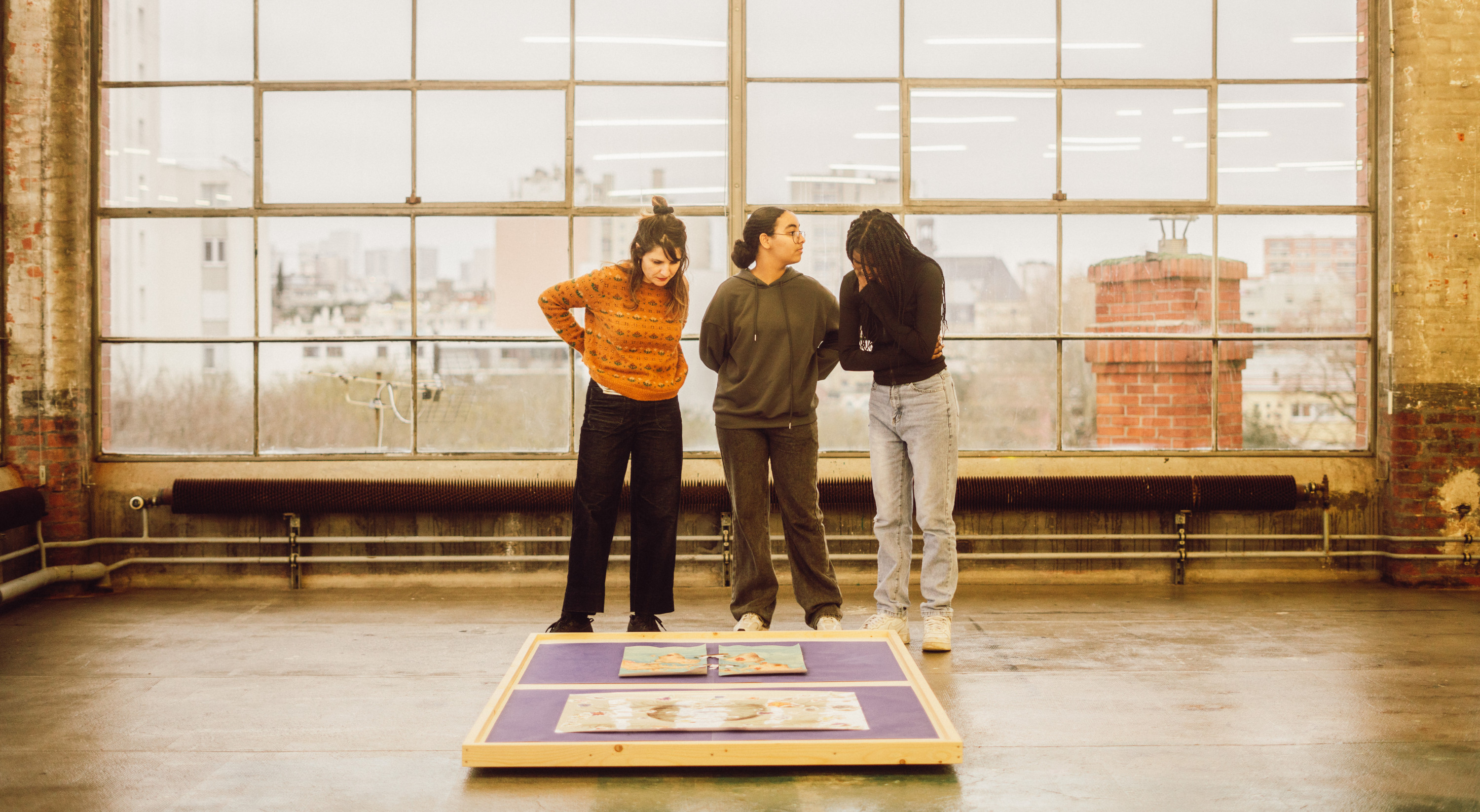 Du dernier étage de la Manufacture des Œillets, où se déploient les grandes salles au Centre d’art contemporain d’Ivry – le Crédac, Sarah Clément-Colas observe le car scolaire d’où sort une classe de seconde du lycée Charles de Gaulle de Rosny-sous-Bois. En ce mercredi, la médiatrice accueille ces élèves pour une visite de l’exposition Correspondances. Lire Angela Davis, Audre Lorde, Toni Morrison, programmée dans le cadre du Festival d’Automne. Le temps de grimper les escaliers et le groupe est là, dans une joyeuse effervescence qui sera la note tenue durant tout l’après-midi. Dans le hall, les élèves s’agglutinent tout de suite autour d’une corbeille de légumes, dont rien n’indique qu’elle fait partie de l’exposition. Suivant leur curiosité, Sarah Clément-Colas interroge les élèves sur ce que cela peut bien être : « Une nature morte » ? « Une mise en bouche » ? C’est la bonne piste, nimbée d’un peu de mystère ; la visite peut commencer.